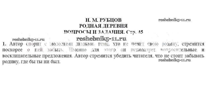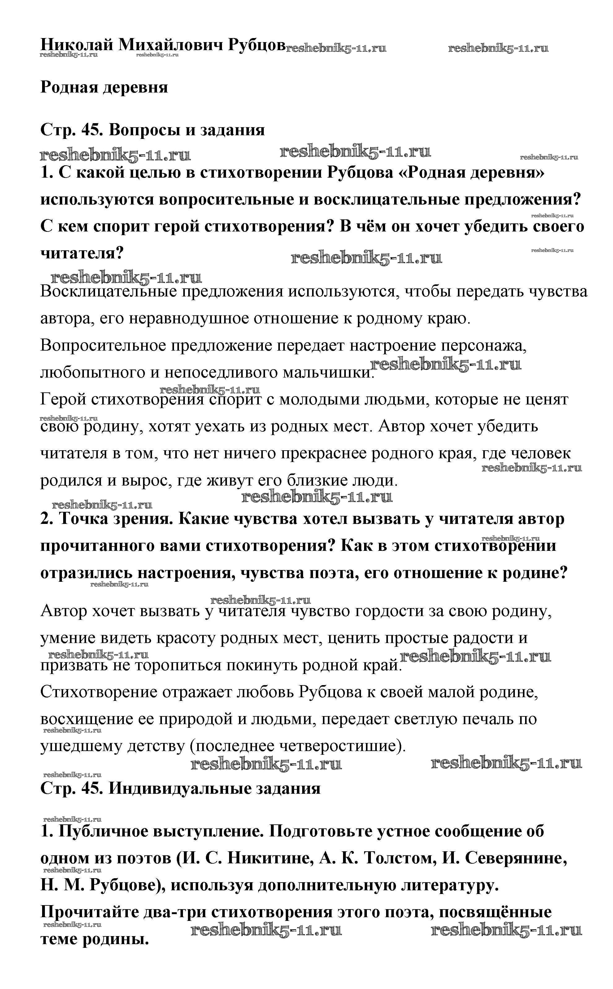Готовая домашняя работа с ответами по Литературе за 5 класс Чертов, Трубина, Ипполитова, Мамонова Учебник Часть 1, 2 Просвещение 2018 ФГОС - Н.М. Рубцов страница 45