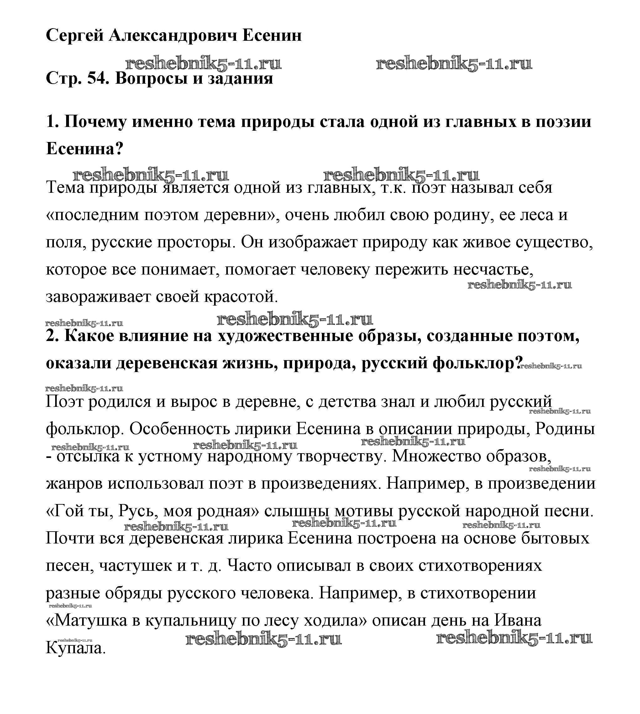 Решебник №2 / часть 2 (тема) / С.А. Есенин / страница 54