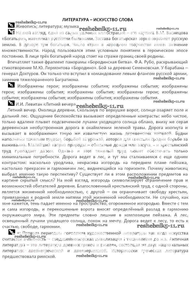 Решебник / часть 1. тема / Литература - искусство слова