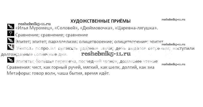 Готовая домашняя работа с ответами по Литературе за 5 класс Курдюмова Рабочая тетрадь Вертикаль Часть 1, 2 Дрофа 2017 ФГОС - Часть 1. Темы Художественные приёмы