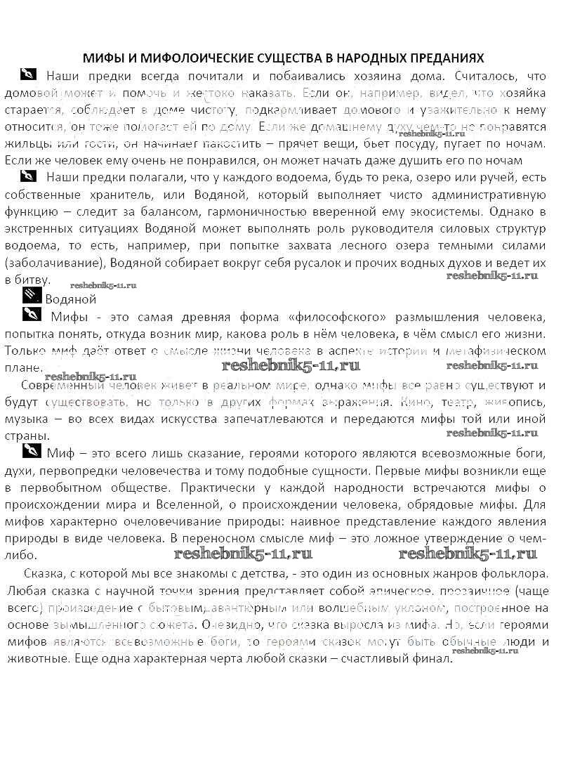 Решебник / часть 1. тема / Мифы и мифологические существа в народных преданиях