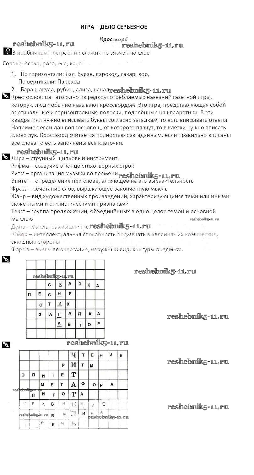 Готовая домашняя работа с ответами по Литературе за 5 класс Курдюмова Рабочая тетрадь Вертикаль Часть 1, 2 Дрофа 2017 ФГОС - Часть 2. Темы Кроссворд