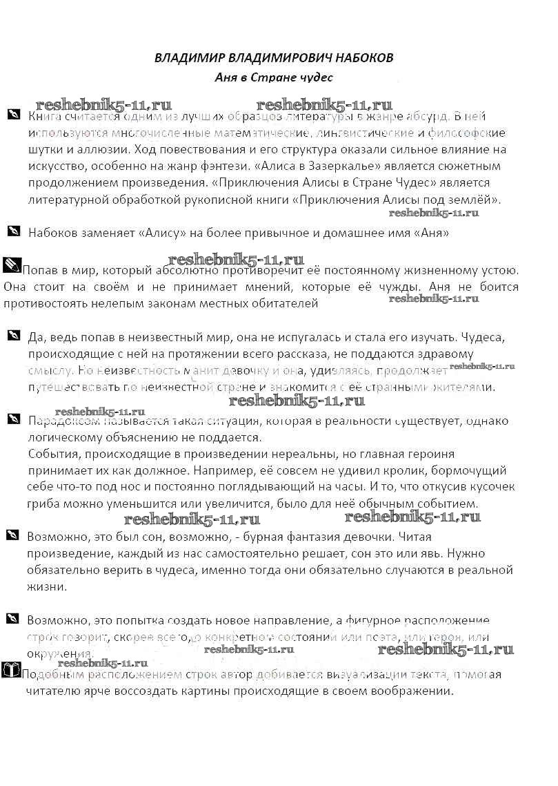 Готовая домашняя работа с ответами по Литературе за 5 класс Курдюмова Рабочая тетрадь Вертикаль Часть 1, 2 Дрофа 2017 ФГОС - Часть 2. Темы Владимир Владимирович Набоков. Аня в Стране чудес