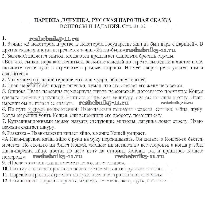 Готовая домашняя работа с ответами по Литературе за 5 класс Курдюмова Учебник-хрестоматия Вертикаль Часть 1, 2 Дрофа 2016 ФГОС - Вопросы и задания на стр. 31-32 1