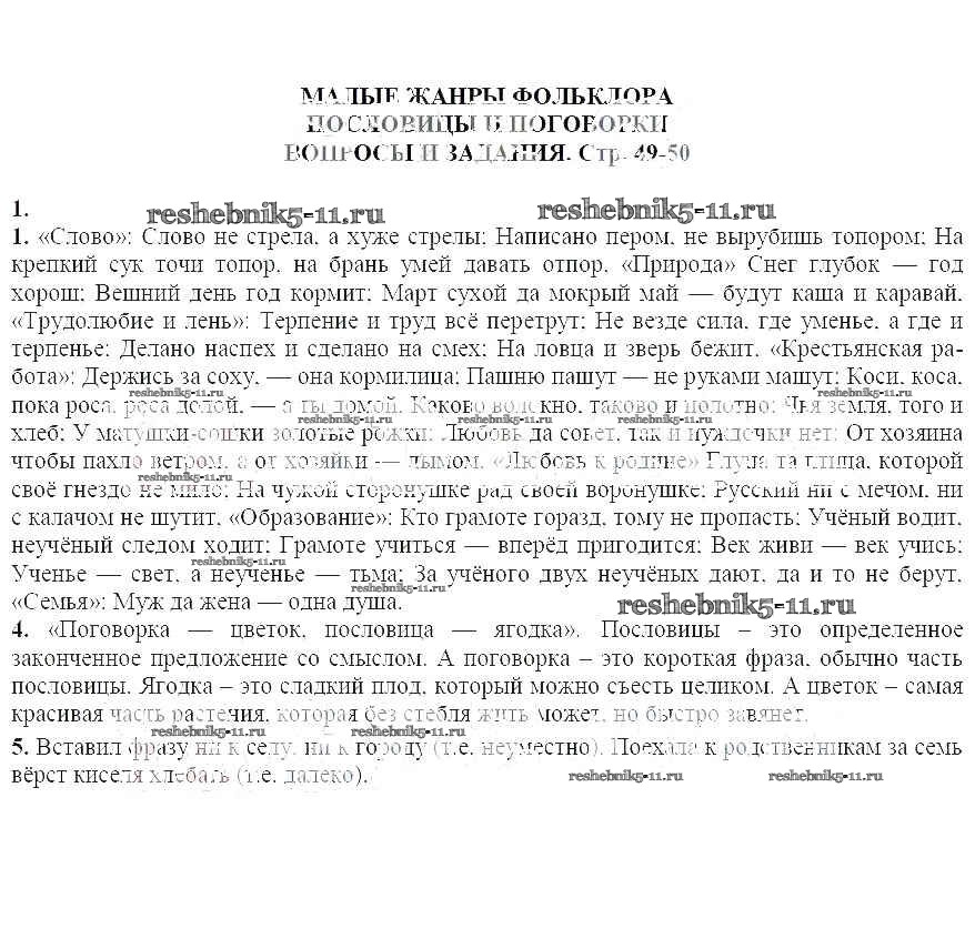 Готовая домашняя работа с ответами по Литературе за 5 класс Курдюмова Учебник-хрестоматия Вертикаль Часть 1, 2 Дрофа 2016 ФГОС - Вопросы и задания на стр. 49-50 1