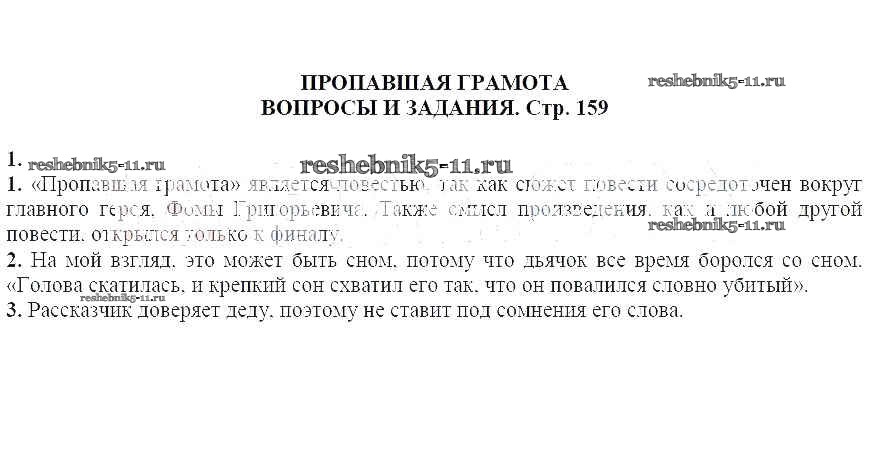 Готовая домашняя работа с ответами по Литературе за 5 класс Курдюмова Учебник-хрестоматия Вертикаль Часть 1, 2 Дрофа 2016 ФГОС - Вопросы и задания на стр. 159 1