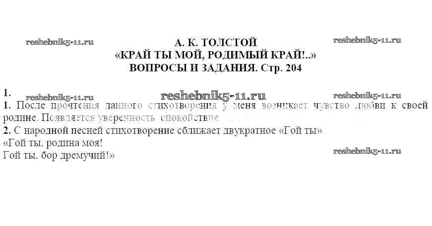 Готовая домашняя работа с ответами по Литературе за 5 класс Курдюмова Учебник-хрестоматия Вертикаль Часть 1, 2 Дрофа 2016 ФГОС - Вопросы и задания на стр. 204 1