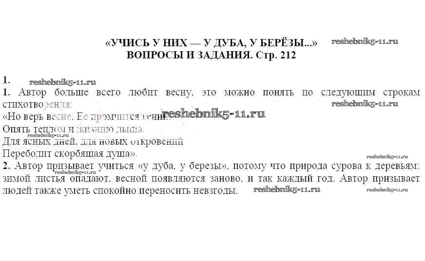 Готовая домашняя работа с ответами по Литературе за 5 класс Курдюмова Учебник-хрестоматия Вертикаль Часть 1, 2 Дрофа 2016 ФГОС - Вопросы и задания на стр. 212 1