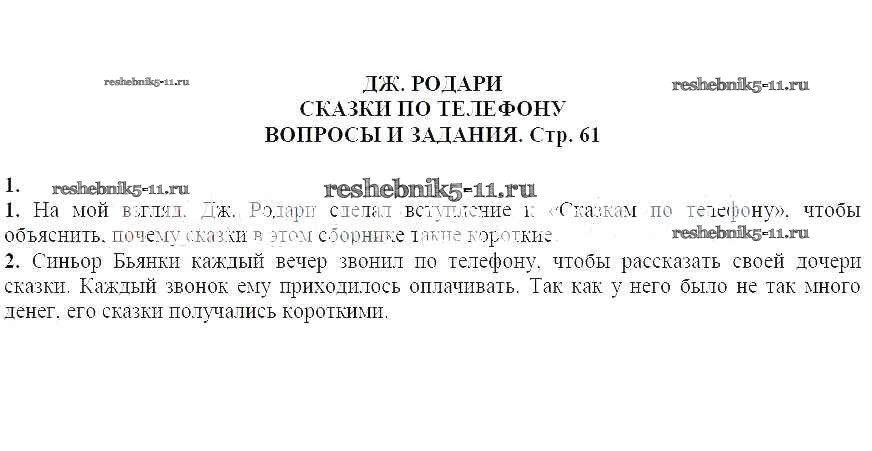 Готовая домашняя работа с ответами по Литературе за 5 класс Курдюмова Учебник-хрестоматия Вертикаль Часть 1, 2 Дрофа 2016 ФГОС - Вопросы и задания на стр. 61 1