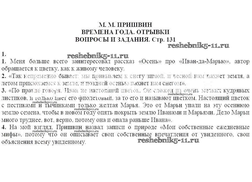 Готовая домашняя работа с ответами по Литературе за 5 класс Курдюмова Учебник-хрестоматия Вертикаль Часть 1, 2 Дрофа 2016 ФГОС - Вопросы и задания на стр. 131 1