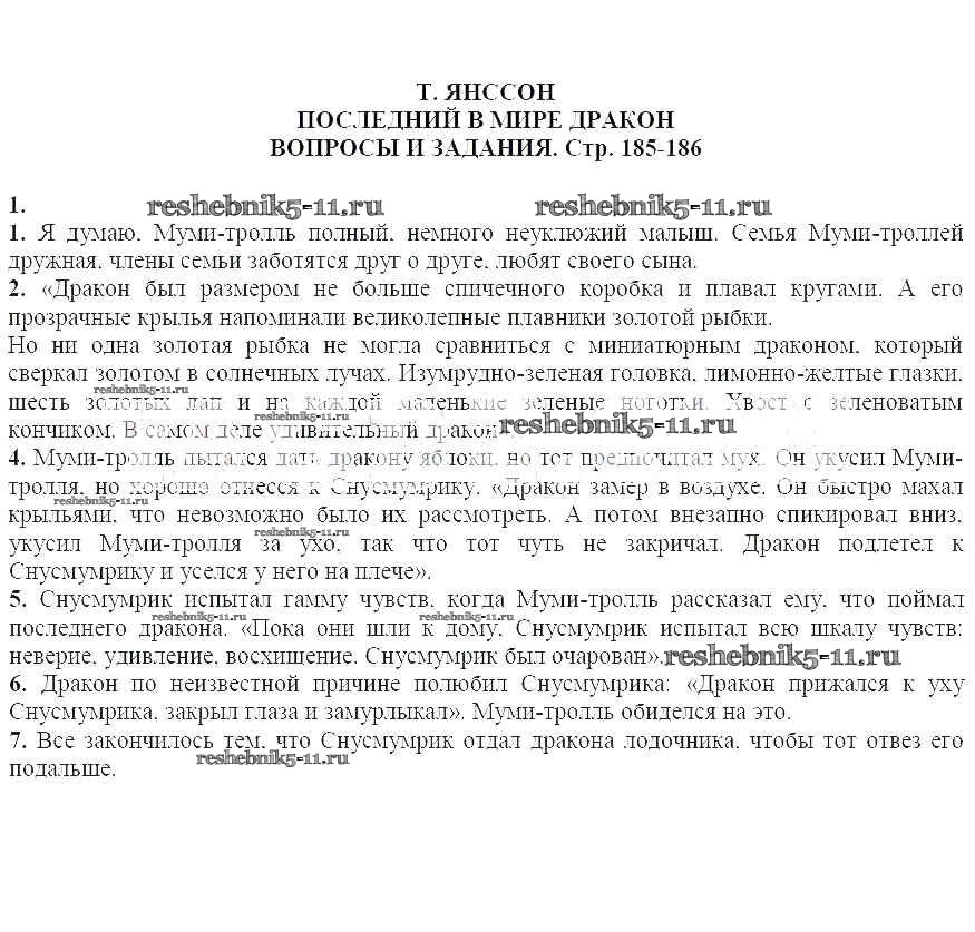 Готовая домашняя работа с ответами по Литературе за 5 класс Курдюмова Учебник-хрестоматия Вертикаль Часть 1, 2 Дрофа 2016 ФГОС - Вопросы и задания на стр. 185-186 1