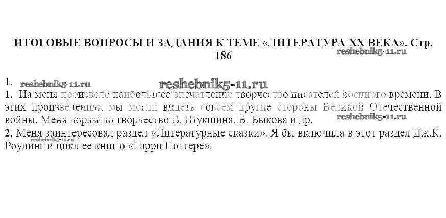 Готовая домашняя работа с ответами по Литературе за 5 класс Курдюмова Учебник-хрестоматия Вертикаль Часть 1, 2 Дрофа 2016 ФГОС - Итоговые вопросы и задания на стр. 186 1