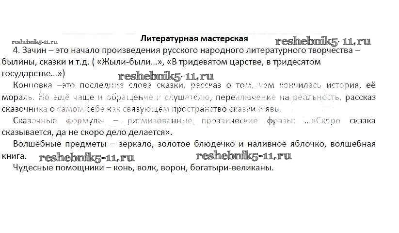 Готовая домашняя работа с ответами по Литературе за 5 класс Ланин, Устинова, Шамчикова, Андрейченко Рабочая тетрадь Алгоритм успеха Часть 1, 2 Вентана-граф 2017 ФГОС - Сказка 4
