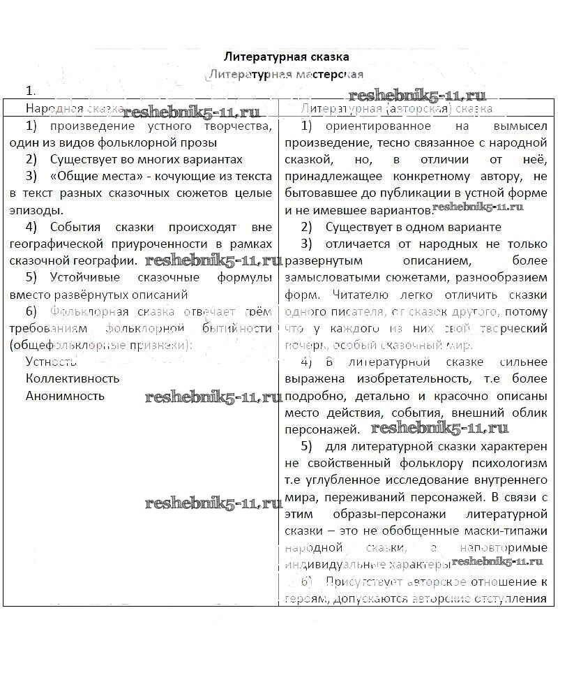Готовая домашняя работа с ответами по Литературе за 5 класс Ланин, Устинова, Шамчикова, Андрейченко Рабочая тетрадь Алгоритм успеха Часть 1, 2 Вентана-граф 2017 ФГОС - Литературная сказка 1