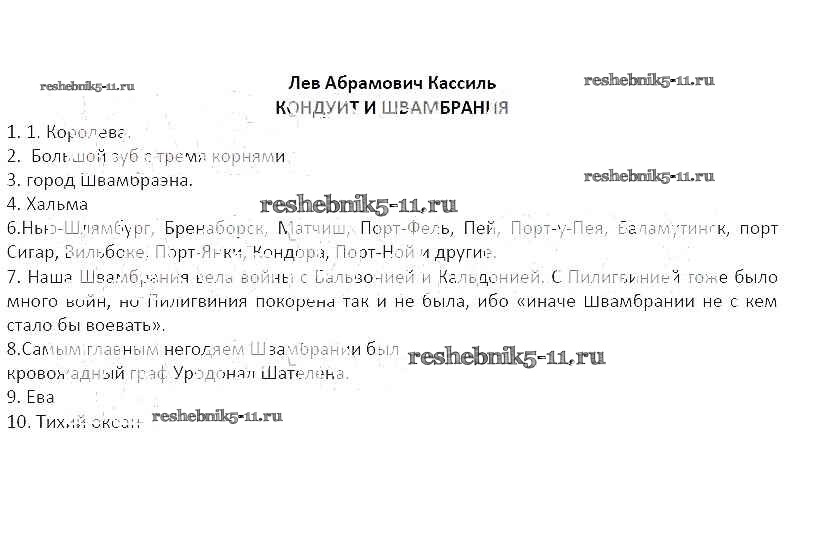 Готовая домашняя работа с ответами по Литературе за 5 класс Ланин, Устинова, Шамчикова, Андрейченко Рабочая тетрадь Алгоритм успеха Часть 1, 2 Вентана-граф 2017 ФГОС - Лев Абрамович Кассиль Кондуит и Швамбрания 1