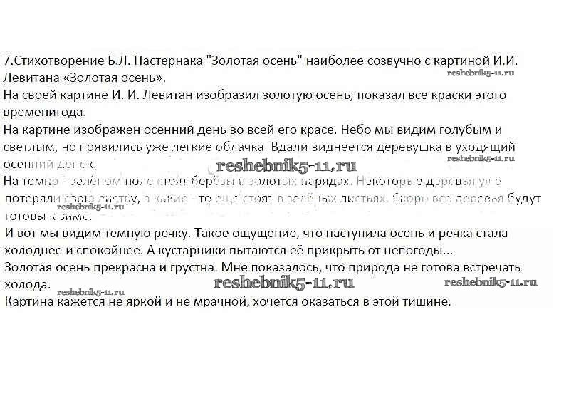 Готовая домашняя работа с ответами по Литературе за 5 класс Ланин, Устинова, Шамчикова, Андрейченко Рабочая тетрадь Алгоритм успеха Часть 1, 2 Вентана-граф 2017 ФГОС - Наедине с поэтом. Учимся читать лирическое стихотворение 7
