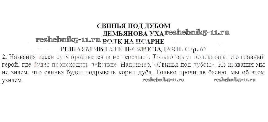 Решебник / часть 1 / Свинья под дубом. Демьянова ухо. Волк на псарне / Решаем читательские задачи (стр.67) / 2