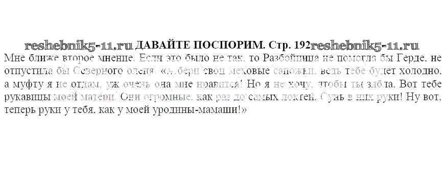 Готовая домашняя работа с ответами по Литературе за 5 класс Ланин, Устинова, Шамчикова Учебник Часть 1, 2 Вентана-граф 2016 ФГОС - Снежная Королева Давайте поспорим (стр.192)