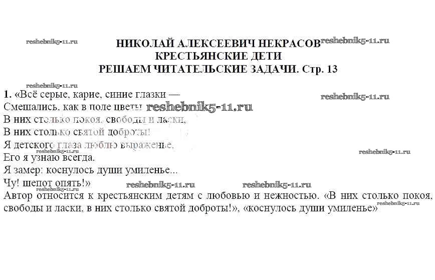 Решебник / часть 2 / Николай Алексеевич Некрасов Крестьянские дети / Решаем читательские задачи (стр.13) / 1