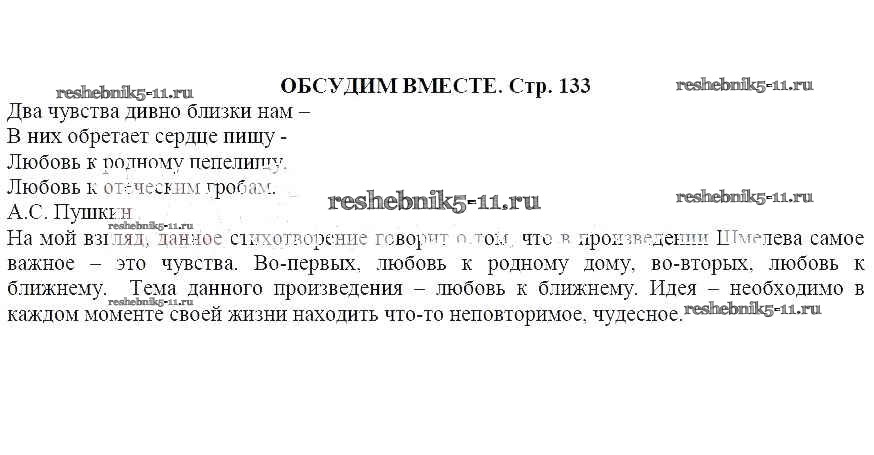 Литература за 5 класс Ланин Учебник Вентана-граф Иван Сергеевич Шмелев. Лето Господне Обсудим вместе (стр.133)