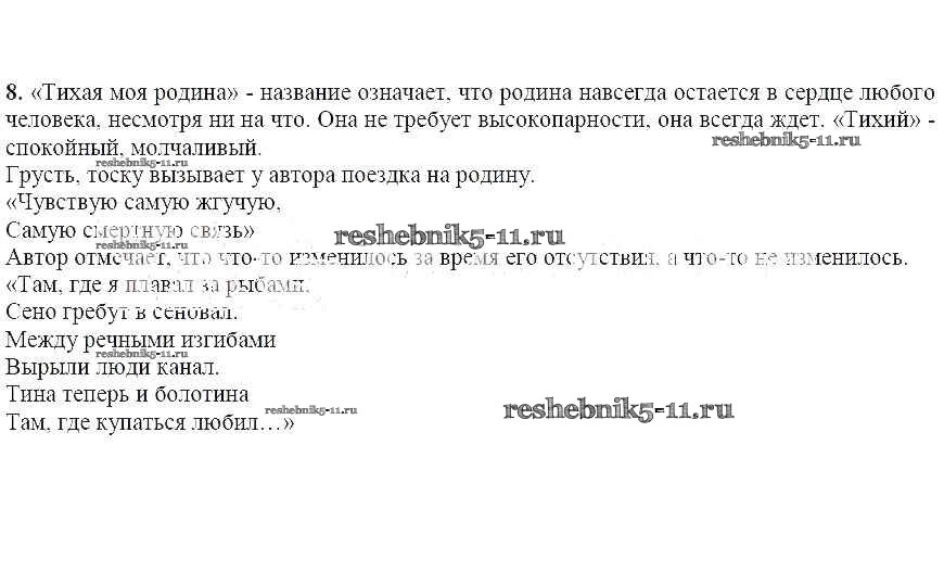 Решебник / часть 2 / Учимся читать лирическое стихотворение / С.А.Есенин, Н.А.Заболоцкий, Б.Л.Пастернак, Н.М.Рубцов / Решаем читательские задачи (стр.302-303) / 8