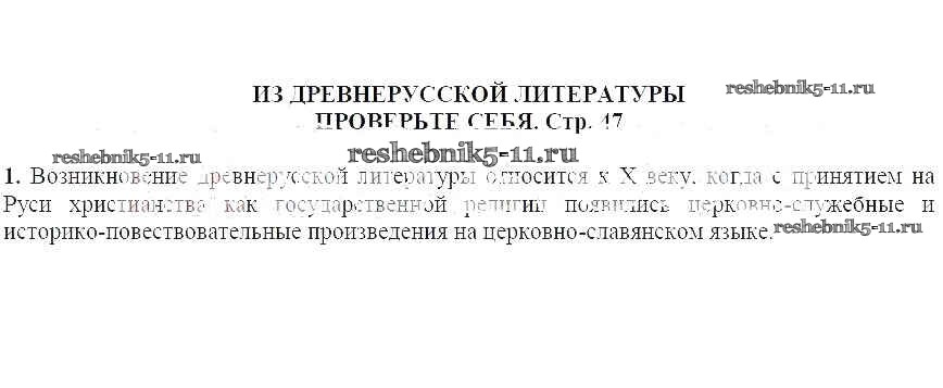 Готовая домашняя работа с ответами по Литературе за 5 класс Коровина, Журавлев, Коровин Учебник Часть 1, 2 Просвещение 2019 ФГОС - Часть 1 (Страницы) 47