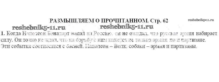 Готовая домашняя работа с ответами по Литературе за 5 класс Коровина, Журавлев, Коровин Учебник Часть 1, 2 Просвещение 2019 ФГОС - Часть 1 (Страницы) 62