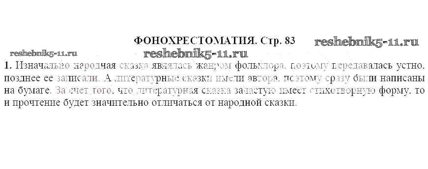 Готовая домашняя работа с ответами по Литературе за 5 класс Коровина, Журавлев, Коровин Учебник Часть 1, 2 Просвещение 2019 ФГОС - Часть 1 (Страницы) 83