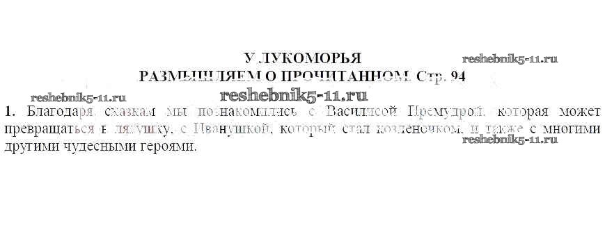 Готовая домашняя работа с ответами по Литературе за 5 класс Коровина, Журавлев, Коровин Учебник Часть 1, 2 Просвещение 2019 ФГОС - Часть 1 (Страницы) 94