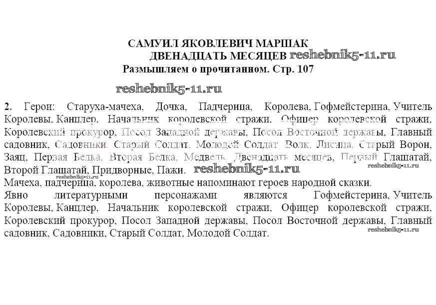 Готовая домашняя работа с ответами по Литературе за 5 класс Коровина, Журавлев, Коровин Учебник Часть 1, 2 Просвещение 2019 ФГОС - Часть 2 (Страницы) 107