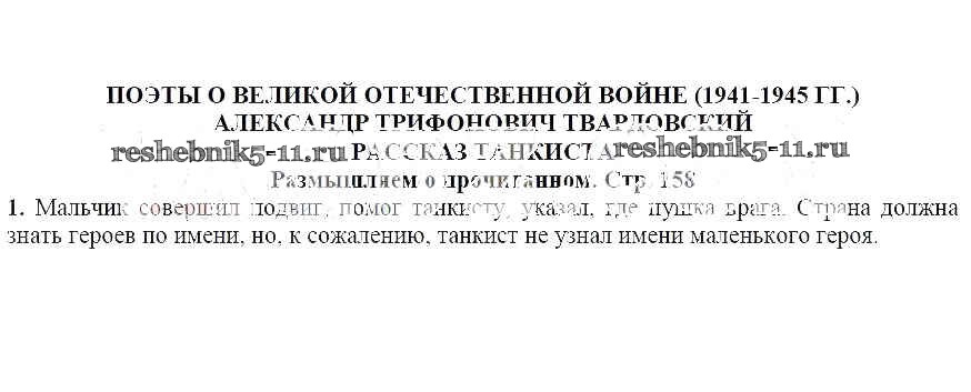 Готовая домашняя работа с ответами по Литературе за 5 класс Коровина, Журавлев, Коровин Учебник Часть 1, 2 Просвещение 2019 ФГОС - Часть 2 (Страницы) 158