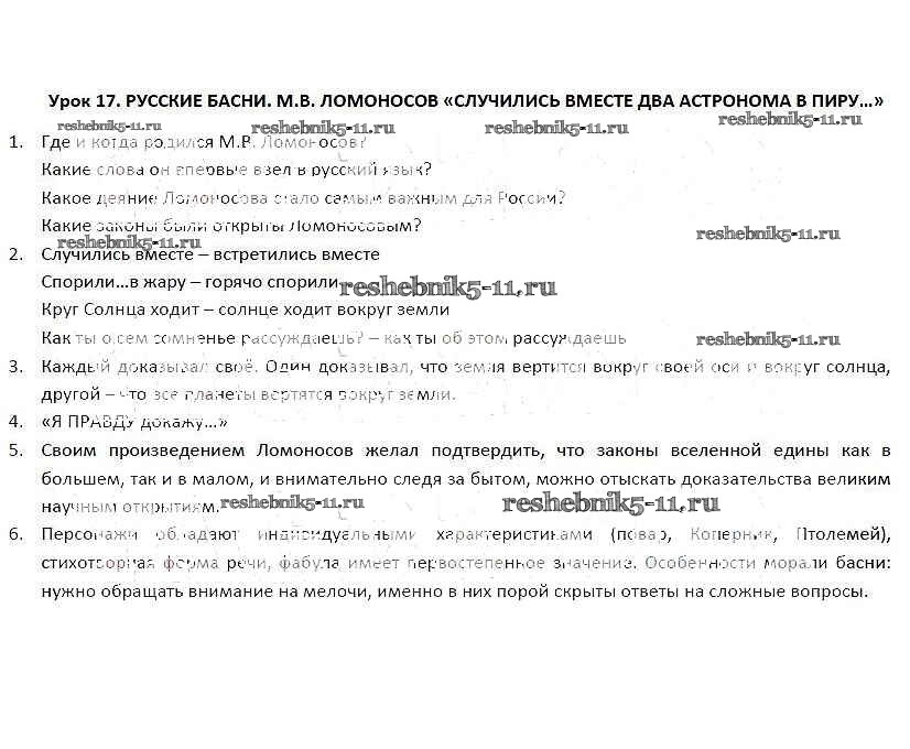 Готовая домашняя работа с ответами по Литературе за 5 класс Соловьева Рабочая тетрадь Инновационная школа Русское слово 2016 ФГОС - Уроки 17