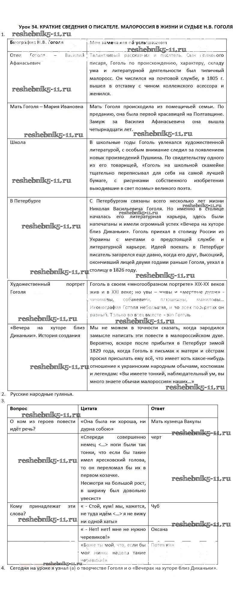 Литература за 5 класс Соловьева Рабочая тетрадь Инновационная школа Русское слово урок 34