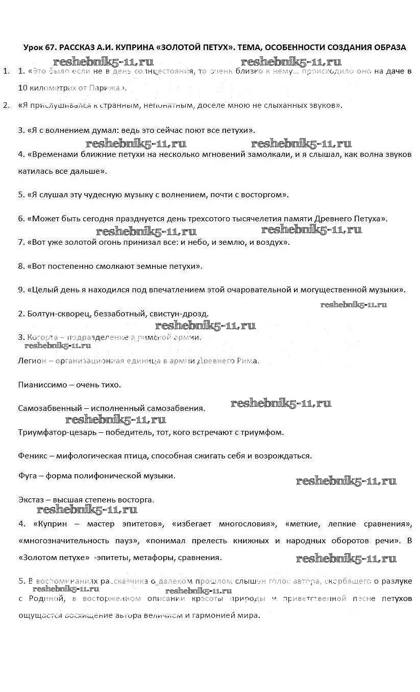 Готовая домашняя работа с ответами по Литературе за 5 класс Соловьева Рабочая тетрадь Инновационная школа Русское слово 2016 ФГОС - Уроки 67