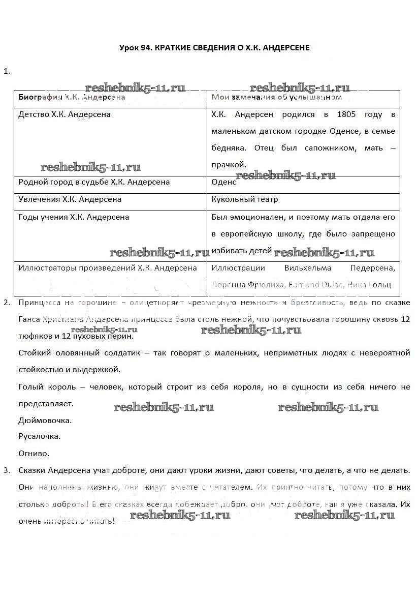Готовая домашняя работа с ответами по Литературе за 5 класс Соловьева Рабочая тетрадь Инновационная школа Русское слово 2016 ФГОС - Уроки 94
