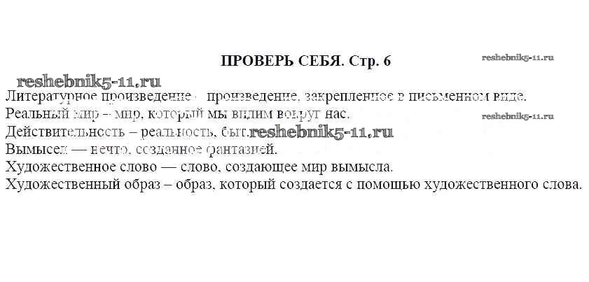 Решебник / часть 1 / Литература как искусство слова / Проверь себя (стр.6)