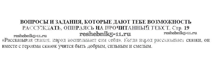Вопросы и задания, которые дают тебе возможность рассуждать, опираясь на прочитанный текст (стр. 19)