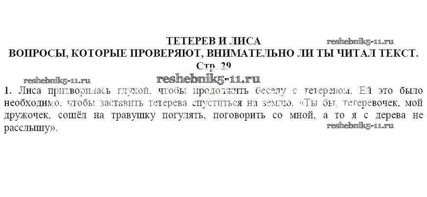 Решебник / часть 1 / Тетерев и лиса / Вопросы, которые проверяют, внимательно ли ты читал текст (стр. 29) / 1