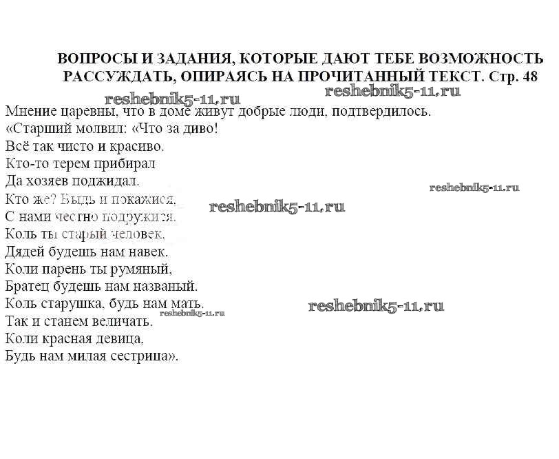 Решебник / часть 1 / Сказка о мёртвой царевне и о семи богатырях А.С. Пушкина / Вопросы и задания, которые дают тебе возможность рассуждать, опираясь на прочитанный текст (стр. 48)