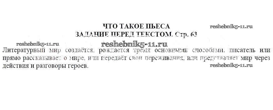Готовая домашняя работа с ответами по Литературе за 5 класс Москвин Учебник Алгоритм успеха Часть 1, 2 Вентана-граф 2020 ФГОС - Что такое пьеса Задания перед текстом (стр.63)