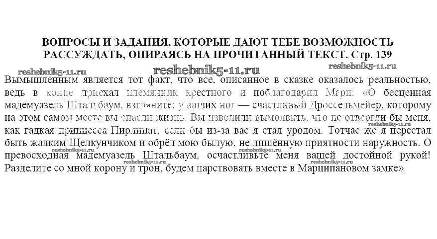 Решебник / часть 1 / Щелкунчик и мышиный король / Вопросы и задания, которые дают тебе возможность рассуждать, опираясь на прочитанный текст (стр. 139)