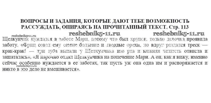 Решебник / часть 1 / Щелкунчик и мышиный король / Вопросы и задания, которые дают тебе возможность рассуждать, опираясь на прочитанный текст (стр. 113)