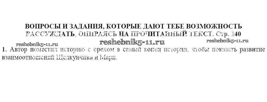 Решебник / часть 1 / Щелкунчик и мышиный король / Вопросы и задания, которые дают тебе возможность рассуждать, опираясь на прочитанный текст (стр. 140) / 1