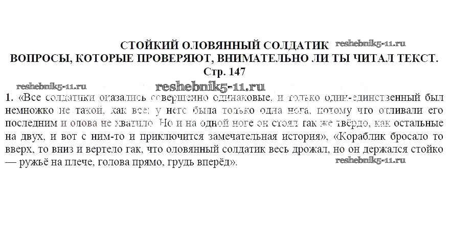 Решебник / часть 1 / Стойкий оловянный солдатик / Вопросы, которые проверяют, внимательно ли ты читал текст (стр. 147) / 1