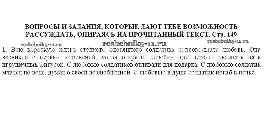 Решебник / часть 1 / Стойкий оловянный солдатик / Вопросы и задания, которые дают тебе возможность рассуждать, опираясь на прочитанный текст (стр. 149) / 1