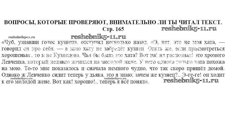 Решебник / часть 1 / Ночь перед Рождеством / Вопросы, которые проверяют, внимательно ли ты читал текст (стр. 165)