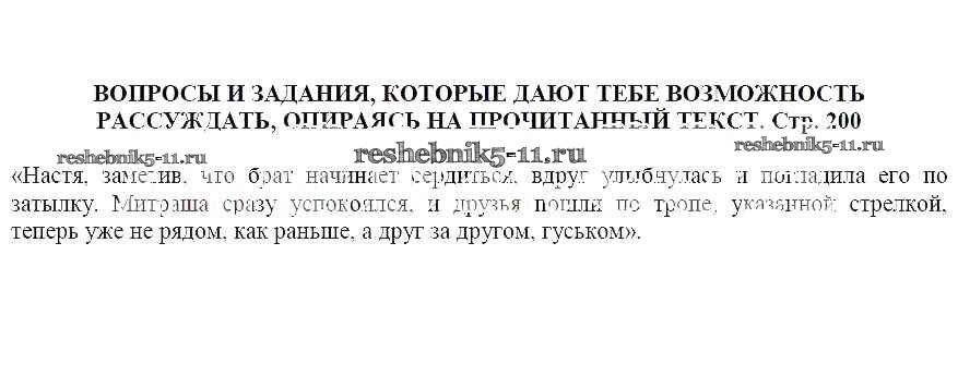 Вопросы и задания, которые дают тебе возможность рассуждать, опираясь на прочитанный текст (стр. 199)