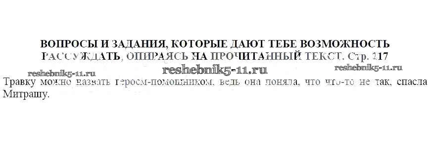 Решебник / часть 1 / Кладовая солнца / Вопросы и задания, которые дают тебе возможность рассуждать, опираясь на прочитанный текст (стр. 217)