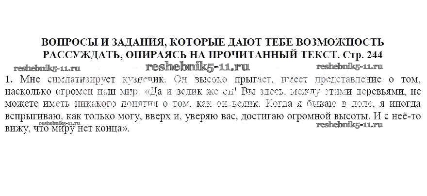 Литература за 5 класс Москвин Учебник Алгоритм успеха Вентана-граф Вопросы и задания, которые дают тебе возможность рассуждать, опираясь на прочитанный текст (стр. 244) 1