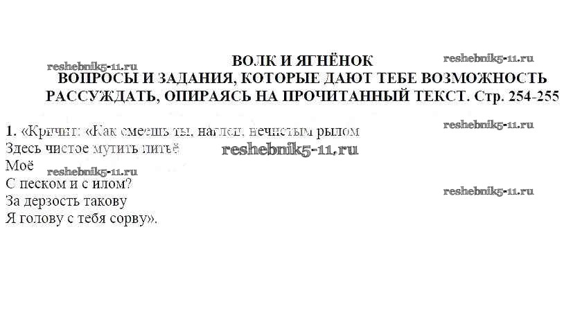 Решебник / часть 1 / Волк и ягненок / Вопросы и задания, которые дают тебе возможность рассуждать, опираясь на прочитанный текст (стр. 254-255) / 1